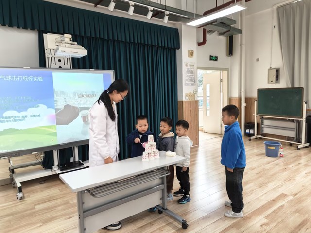 一张普通纸巾、一个乒乓球、一杯清水,就能让水“悬空”不洒。志愿者把杯子倒转,纸片紧贴瓶口,大气压从下方“顶住”水柱,孩子们直呼“水被施了定身术”。通过亲手操作,他们第一次真切感受到“空气也有力量”。