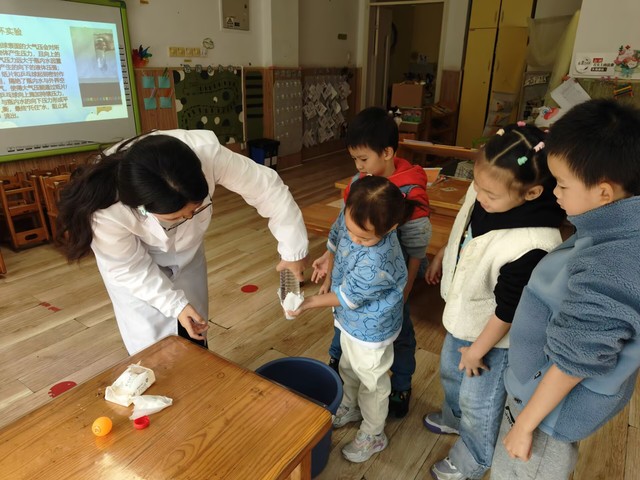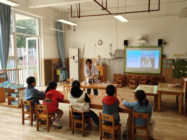 “原来大气压真的能把一杯水‘按’在瓶口!”“老师,我的可乐火箭喷得比你高!”11月13日下午,理学院青年志愿者服务队的指导教师蒲小敏老师与5名志愿者走进成都市红光润和幼儿园,用4个简单又好玩的科学实验,为小朋友们送上了一堂“看得见、摸得着、尖叫不断”的科普小实验。参与此次活动的志愿者来自于物理2025级1班团支部、物理2025级2班团支部、数学2025级1班团支部、数学2025级2班团支部。活动开始前,对志愿者的服装穿戴、交流沟通技巧、实验操作进行了细致的培训。