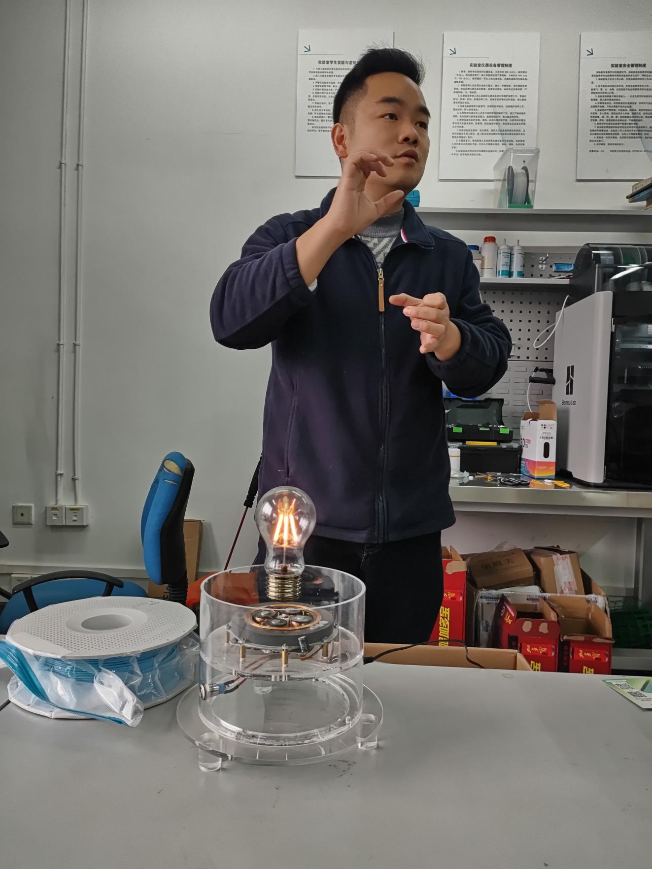 图2 范老师展示并讲解磁悬浮发光灯泡