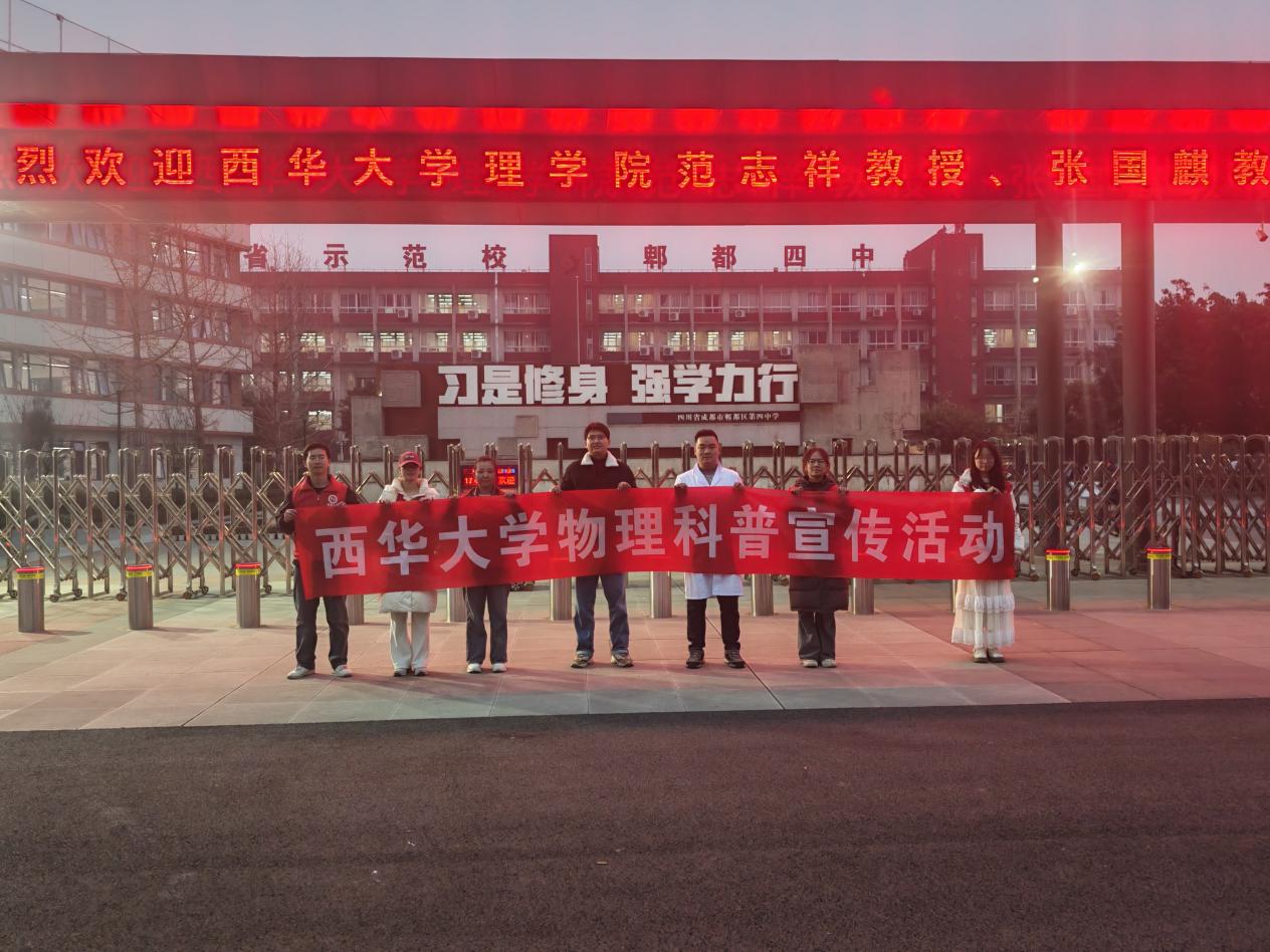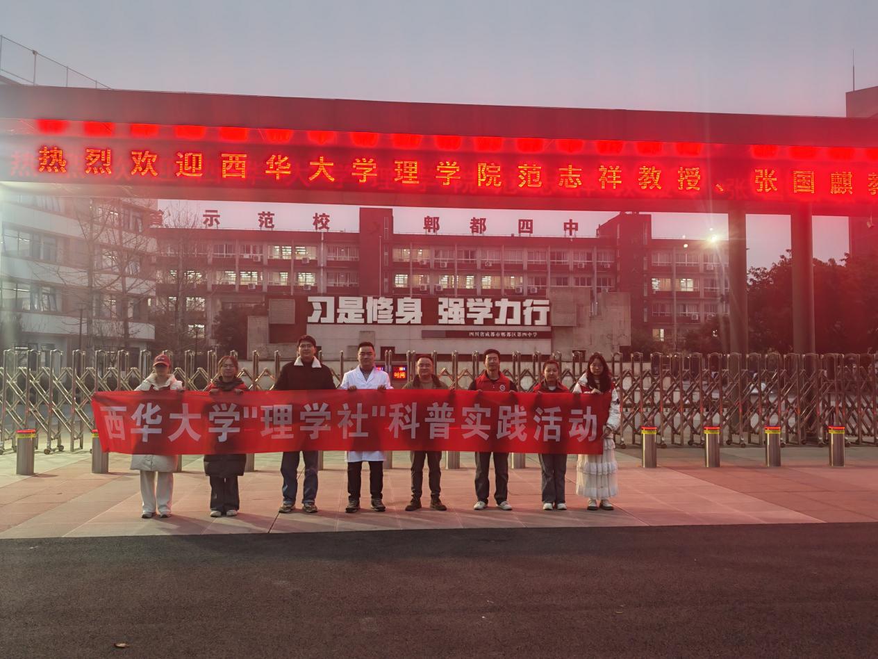 2025 年 12 月 8 日,西华大学理学院物理系范志祥老师带领物理科普团队、理学院青年志愿者服务队志愿者及 西华大学“理学社” 社员,走进成都市郫都区第四中学,为该校高一学子带来了主题为 “科学罐头电子积木小实验乐园” 的科普讲座。活动以趣味实验为载体,将抽象物理知识转化为生动实践,有效激发了同学们的科学探索热情。