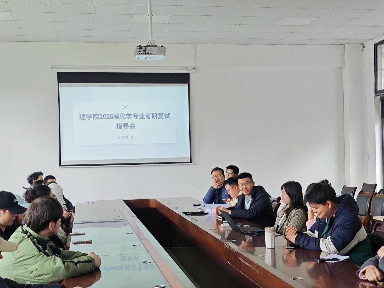 考研复试在即,为切实护航2026届化学专业考研学子冲刺上岸,精准破解复试备考难题,3月10日,理学院专门组织召开2026届化学专业考研复试指导会,为学子们送上“复试干货”。学院院长陈明军、学院副书记周川亲临现场指导,化学系副主任张国麒,化学系教师汪婷、王骏杰担任指导嘉宾,2022级化学专业辅导员阮柳清主持会议,2022级全体化学专业考研学生参会聆听。