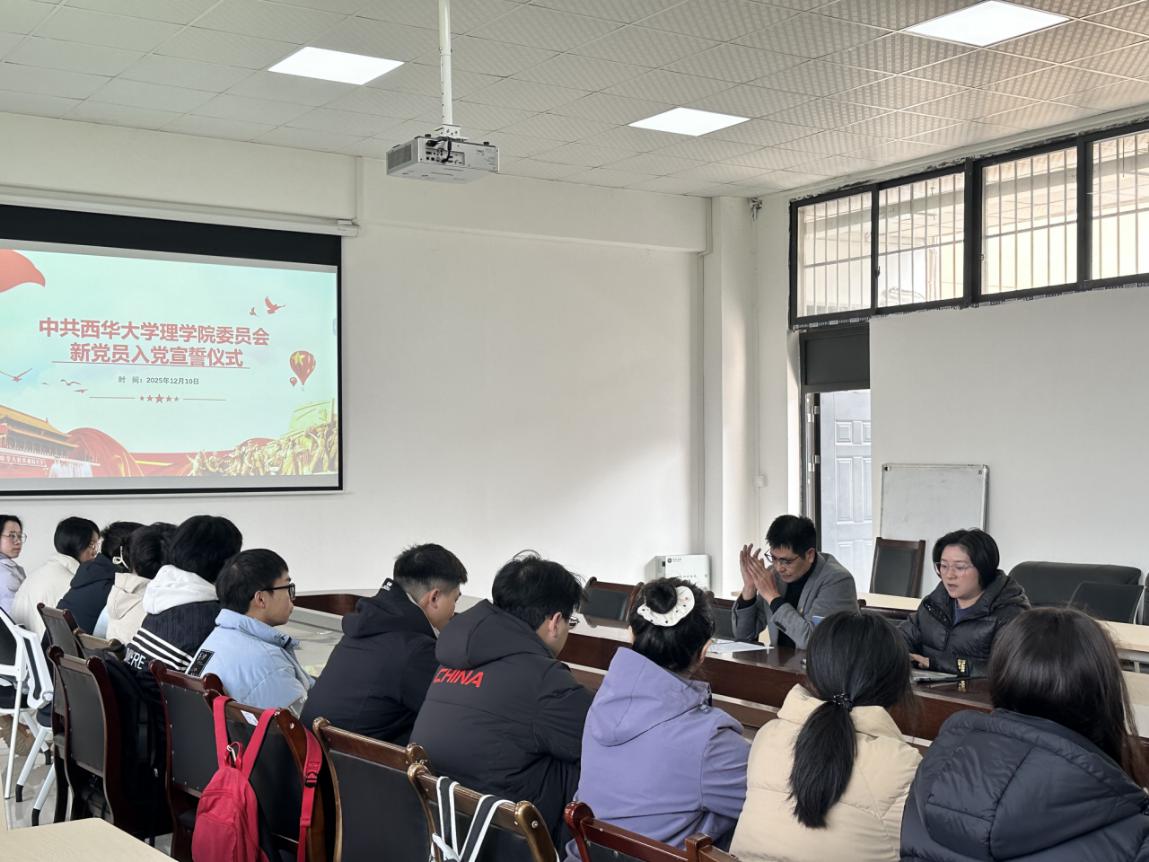 为进一步教育引导新发展党员铭记入党初心、强化党员意识、坚定理想信念,充分发挥党员先锋模范作用,理学院党委于2025年12月10日在2B-408会议室举行新发展党员集体入党宣誓仪式,学院党委副书记兼纪委书记周川、专职组织员王燕晶及新发展的20名党员参加仪式。