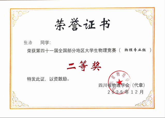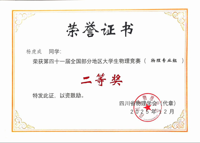 作为首次组队参赛的高校,西华大学在理学院物理系范志祥老师的统筹组织下,共组织了 31 名理工科学生参与该赛事。经过激烈比拼,西华学子凭借扎实的物理学科基础与良好的创新思维能力斩获佳绩:2 人获二等奖,2 人获三等奖,4 名获奖学生均来自应用物理学专业,首次参赛便实现赛事奖项 “零的突破”,展现出应用物理学国家级一流专业建设点专业教学的扎实功底与人才培养成效。