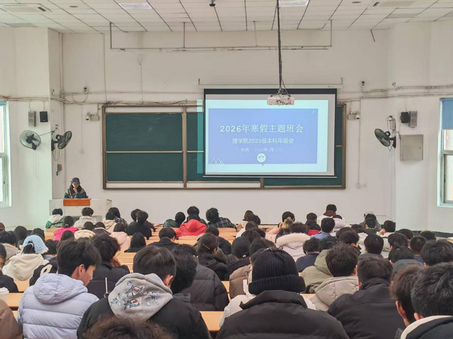 为确保2025级本科生度过一个安全、充实、有意义的寒假,2026年1月13日下午,理学院召开了2025级本科生寒假离校主题班会。会议由2025级本科生辅导员主持,全体2025级本科生参加。