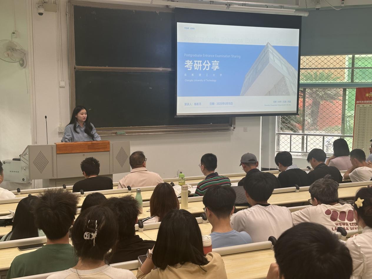 接着,2021 级杨新月和陈心旎同学结合自己考研的备考经历,为学弟学妹们分享了宝贵的经验。他们从复习规划、学习方法、心态调整等方面进行了详细讲解,为同学们提供了实用的备考建议。