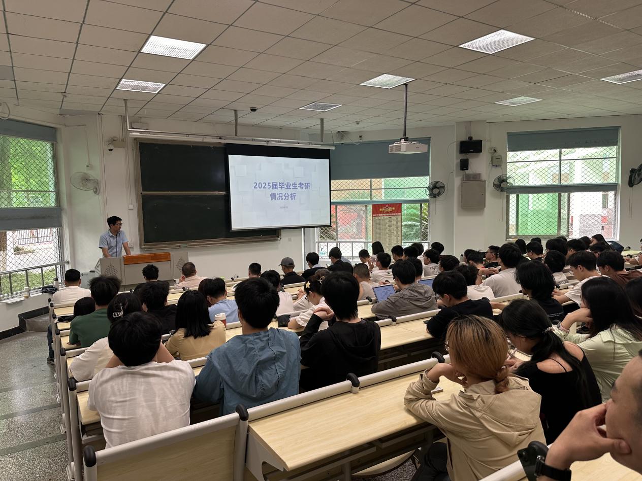 会议伊始,周川副书记通过详实的数据向同学们展示了理学院近几年的考研情况。他结合应用物理学专业的考研录取率、一志愿和调剂录取率以及实际案例,深入浅出地分析了应用物理学专业的考研去向,让同学们对考研形势有了清晰的认识。