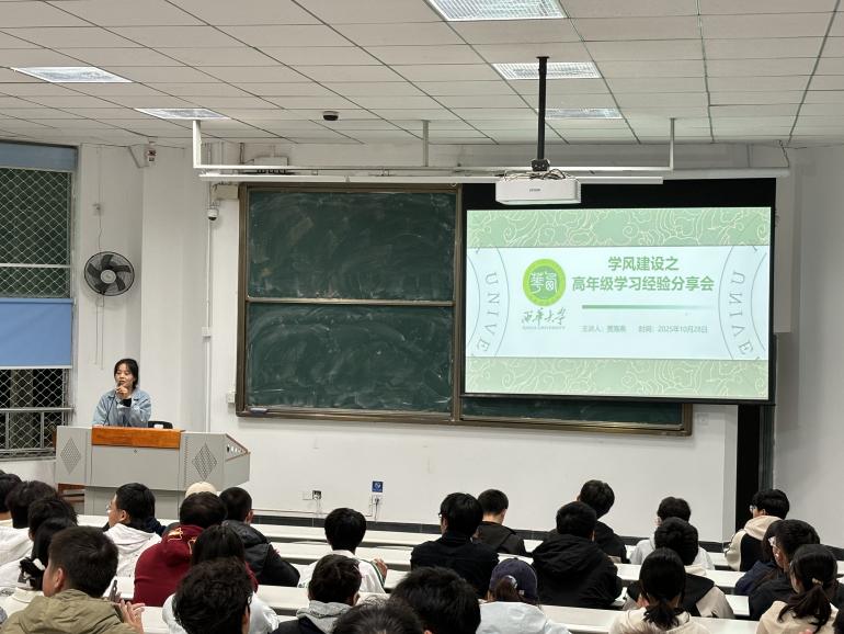 为促进学风建设,帮助物理专业学生明确学习目标,10月28日下午,理学院在4A-102教室举办物理专业高年级学习经验分享会,2025级本科生辅导员主持。本次活动邀请了三位保研的高年级学生代表进行经验交流,2025级和2024级全体物理专业本科生参加。