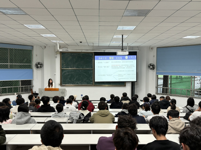刘玲以”保研体系中的科研能力认知”为核心分享,强调优质科研经历是保研核心竞争力——既体现项目立项至总结的全流程把控能力,更彰显学术思考深度与创新力,为学子构建清晰认知框架。曹佳佳梳理保研基础条件与核心要素,拆解学分绩点、科研成果、学科竞赛等评价权 重,并建议低年级主动对接导师、融入课题组,结合兴趣选课题,提前积累优势。两位主讲人构建四年保研路径:大一大二夯实绩点、初涉科研实践;大三大四深耕核心项目、筹备申请材料,攻坚院校联络、夏令营及面试环节,保障各阶段衔接顺畅。