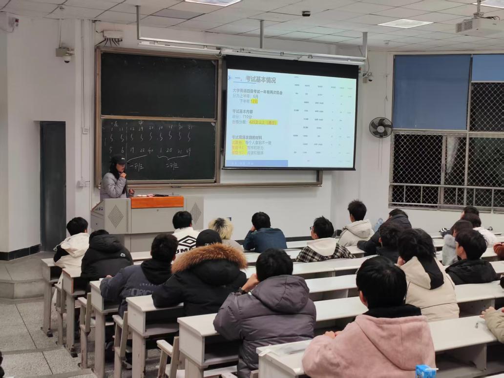 为帮助新生精准把握大学英语四级考试要求,科学规划学习路径,营造积极向上的学风,理学院于11月24日晚,在第四教学楼4A-104为2025级本科生举办大学英语四级主题班会暨模拟考试。本次活动由2025级本科生辅导员精心策划并主持,全体25级本科新生参加。