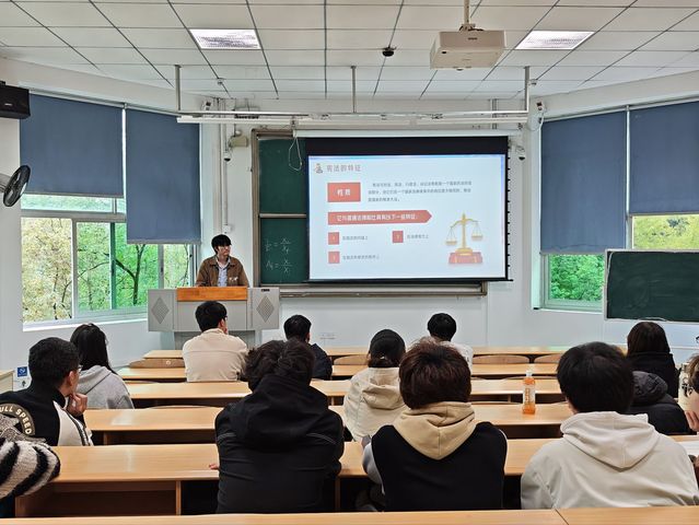 班会中,辅导员与班委骨干组成宣讲小组,从宪法概念、性质、特征及发展历程四个维度,结合PPT演示和条文解读开展讲解,帮助学生明晰宪法与生活的关联。为提升学习实效,各班级设置歌曲传唱、宪法诵读、案例研讨等互动环节。为提升实效,各班级设置多样化互动:传唱《宪法伴我们成长》、分组诵读宪法条文,更以校园贷等案例开展研讨,“以案释法”让法律知识入脑入心。