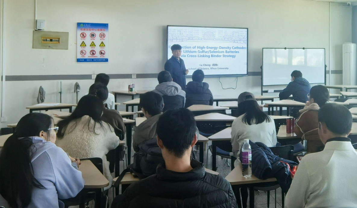 2025年11月27日,西华大学理学院“研究生学术活动月”系列活动顺利举行,物理系青年教师程路博士受邀作题为《交联聚合物策略驱动的高比能锂硫和锂硒电池正极构筑》的专题学术报告。本次报告聚焦高能量密度储能体系的前沿发展,为硕士研究生和青年教师提供了一次深入了解前沿材料设计策略的思路。