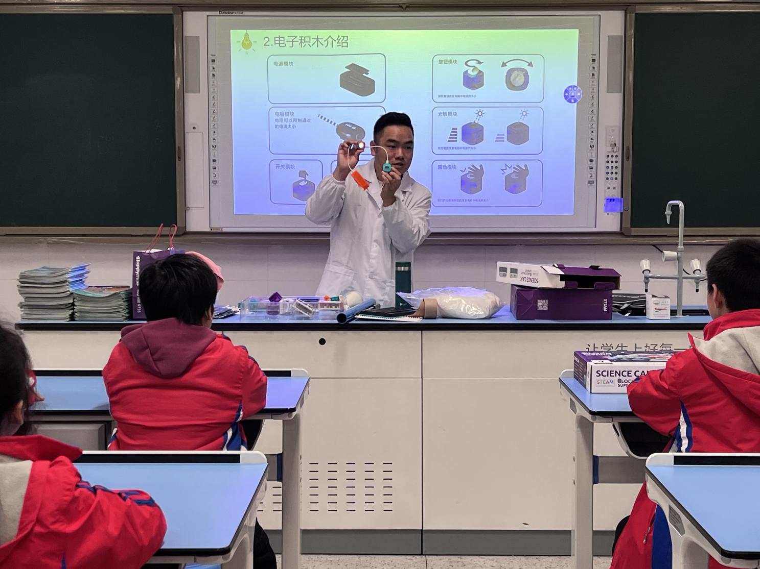 活动采用 “理论讲解 + 动手实践” 的模式,让科学知识贴近生活、触手可及。理论讲解环节,范志祥老师结合家中电器、校园路灯等生活场景,生动阐释了电的基础知识、串联电路原理及静电现象,将抽象的科学概念与日常体验紧密结合,帮助同学们建立 “电就在身边” 的认知。